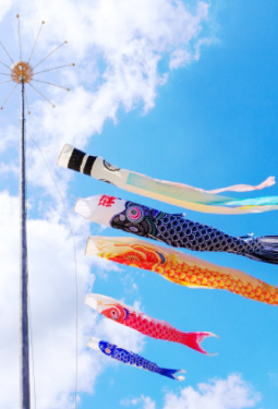 五月に入るとあちこちの家の空に、鯉のぼりが泳ぐ姿を見かけるようになります。端午の節句の飾りには、幟旗(のぼりばた)や鯉のぼりのような戸外飾りと、甲冑や五月人形、座敷幟(ざしきのぼり)のような室内飾りの2種類があります。